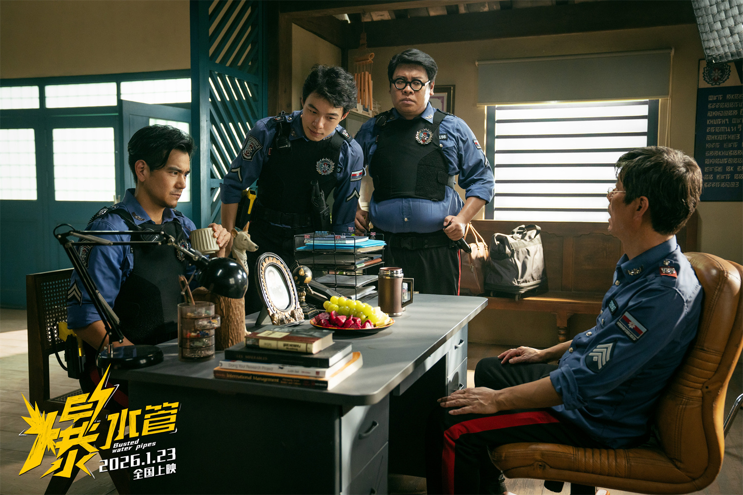欢迎来到和平镇!由周涤啡导演执导的犯罪喜剧《爆水管》曝“民风淳朴和平镇”特别视频,诚邀屏幕前的各位观众跟随东南亚卷王警察,兼任本次特邀导游于大海(彭于晏饰)一起走进这个“疯”景秀丽、不养闲人的小镇。视频中,和平镇居民的一系列逆天操作,可谓把“反差”这个词诠释得淋漓尽致。 不仅人们喜欢用肢体向同伴表达热情,每天“打作一团”,就连这里的牛都横冲直撞,一副想要撞飞所有人的架势。而当镜头一转,于大海面对着人满为患的和平镇监狱的画面,也表示出这一切都将在影片中变为东南亚警察小队的“天降KPI”。他们是如何将这般“民风彪悍”的小镇,摇身一变为连续7年0犯罪率的“治安神话”?不禁令人好奇。 不只“疯土人情”别具一格,和平镇的特色体验项目同样引领着“新疯潮”。四季健康主理人罗四季(艾伦饰)创设的助眠项目,不仅吸引着众多有着睡眠问题的居民,同样也戳中了于大海的痛点。视频中,于大海躺在棺材里睡觉的画面,平静中透露着一种离谱的疯感。而两人一起跑步时,罗四季说出的那句“警察下班比老百姓还早”,也让人忍不住猜想,这群即将因没有案子,而失去工作的东南亚警察接下来将会用哪些办法顶疯作案,爆笑犯罪! 在电影《爆水管》中还有一群与和平镇精神状态十分契合的“特殊旅客”,他们正是前来投奔亲戚罗四季的罗浩(周游饰)、牛大轮(闫佩伦饰)等祖传盗墓家族。他们来到和平镇开拓“海外业务”,盯上了一座藏在警局之下的古墓。 而此时东南亚警察们正因治安太好即将失业,于是他们决定自己造个大案。视频中,伪装成水管工的罗浩和牛大轮,已正带着队友挖宝的于大海在警局正面相遇,一起“和平镇史上最大案件”一触即发。一起相约和平镇,开年爆笑,影院揭晓!